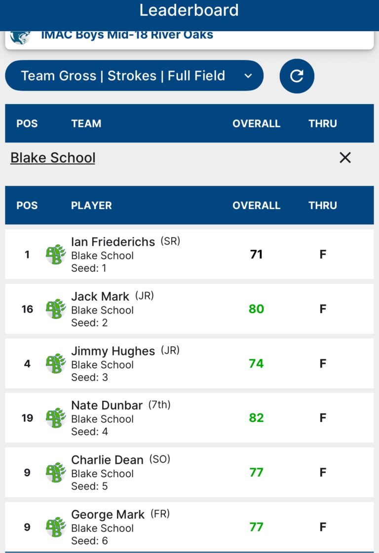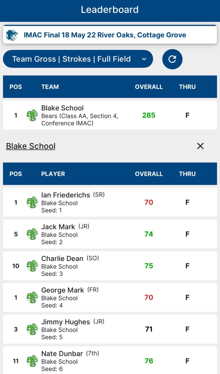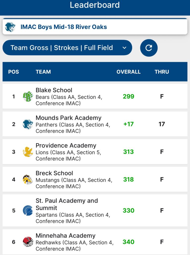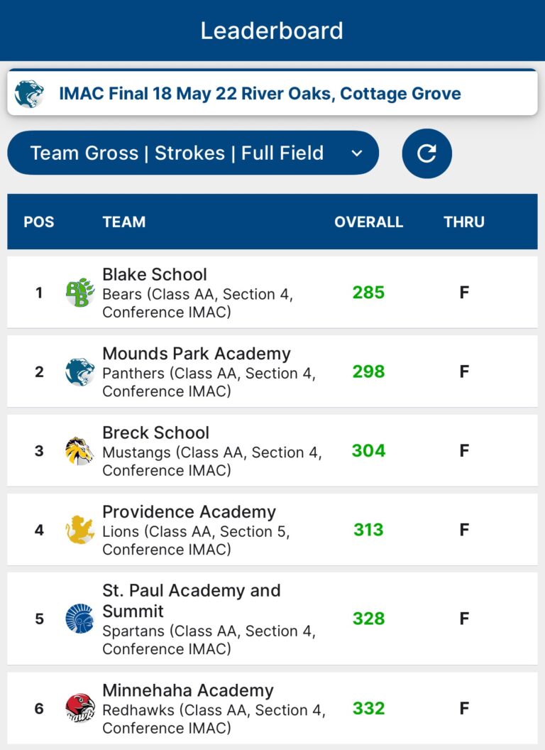 The Bears delivered a dominant performance at the IMAC Championship, securing their 10th consecutive IMAC title with a decisive 15-stroke victory. Their strong play on May 12th propelled them to an initial two-stroke lead. Senior All-State golfer Ian Friederichs set the pace with an even-par 71 at River Oaks on day one. The Bears then surged ahead on day two at River Oaks, carding impressive scores to widen their lead. Once again, Senior Captain Ian Friederichs led the charge with a 1-under-par 70, matched by an equally impressive 1-under-par 70 from ninth grader George Mark.